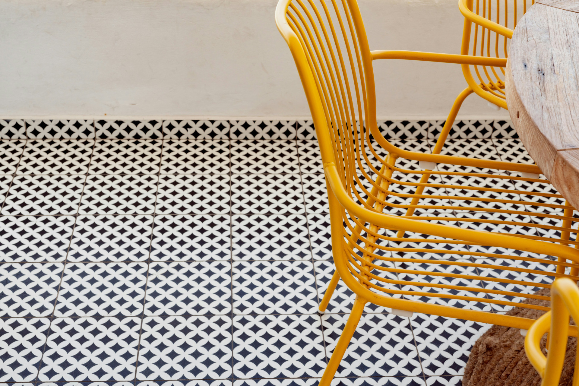 Du kan også bruge mønstre til at markere zoner i et åbent rum – fx spiseområde, opholdsområde eller ganglinjer. Det er en enkel måde at skabe struktur i indretningen på, uden at bruge vægge eller tæpper.